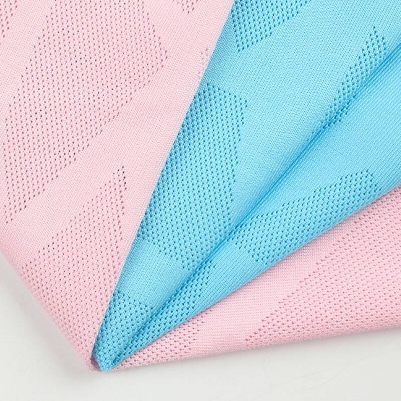 150 जीएसएम थोक नमी अवशोषक शीतलन संवेदना वाला मेश बुना हुआ जैकार्ड नायलॉन-पॉलिएस्टर कपड़ा टी-शर्ट, पोलो शर्ट और आउटडोर क्लोनिंग के लिए